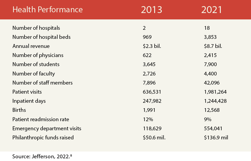 TABLE 1. Metrics for Jefferson’s Health-Related Performance, 2013 and 2021