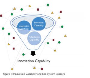 Figure 1 illustrates the additive nature of organizational capability, with innovation capability being a function of combined execution, integration and adaptation capabilities, through which eco-systems can be fully mined for their innovation potential.