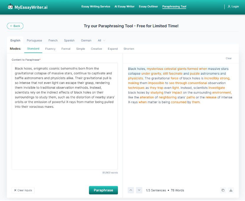 In the paraphrasing tool, take advantage of the different modes available. Each mode caters to a unique style, from standard to creative. Experimenting with these modes can help you achieve the tone and style you’re aiming for in your writing.