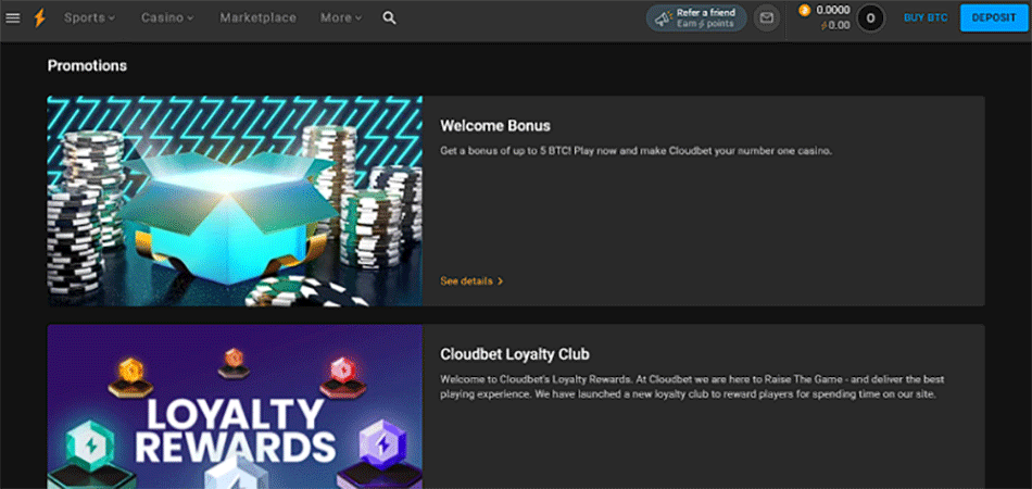 - Exceptional Welcome Package: Cloudbet’s welcome bonus of up to 5 Bitcoins can maximize the value of your deposits.