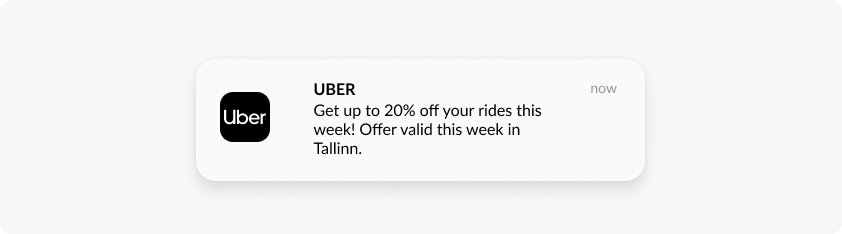 Here is an example of a location-triggered push notification with an exclusive offer tailored to a specific customer’s experience: