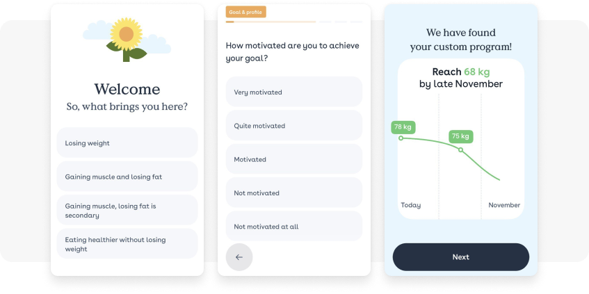 Mobile messaging makes subscription benefits most apparent to customers at each stage of the customer journey – from onboarding to daily usage and new features adoption. Here is an example of welcome in-app messages in a nutrition app: