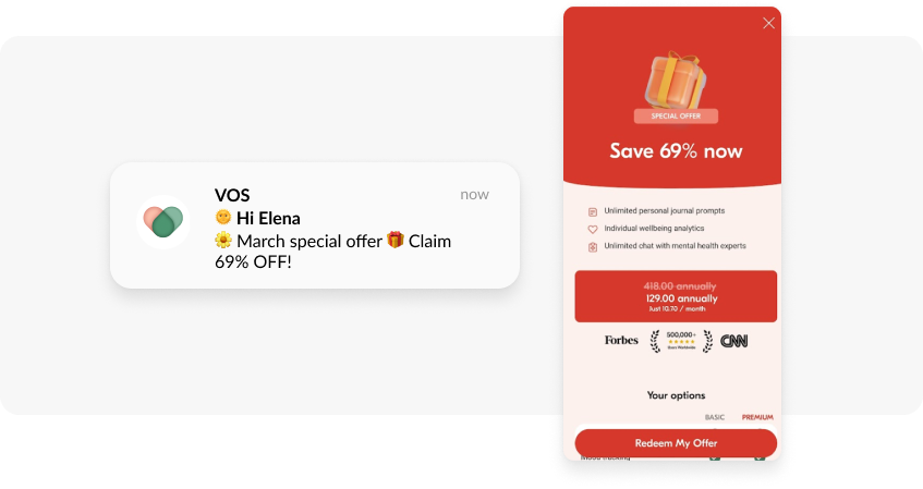 This is another good reason for businesses to implement an effective mobile messaging strategy, as it can drive conversion to subscriptions with measurable results. From Pushwoosh customers’ experience, it is feasible to convert up to 67% of users into paid subscribers and enjoy an up to 34 % MRR increase.