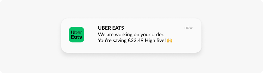 Here is an example of a transactional push notification that calculates how much a customer saved on the order with the applied bonus:
