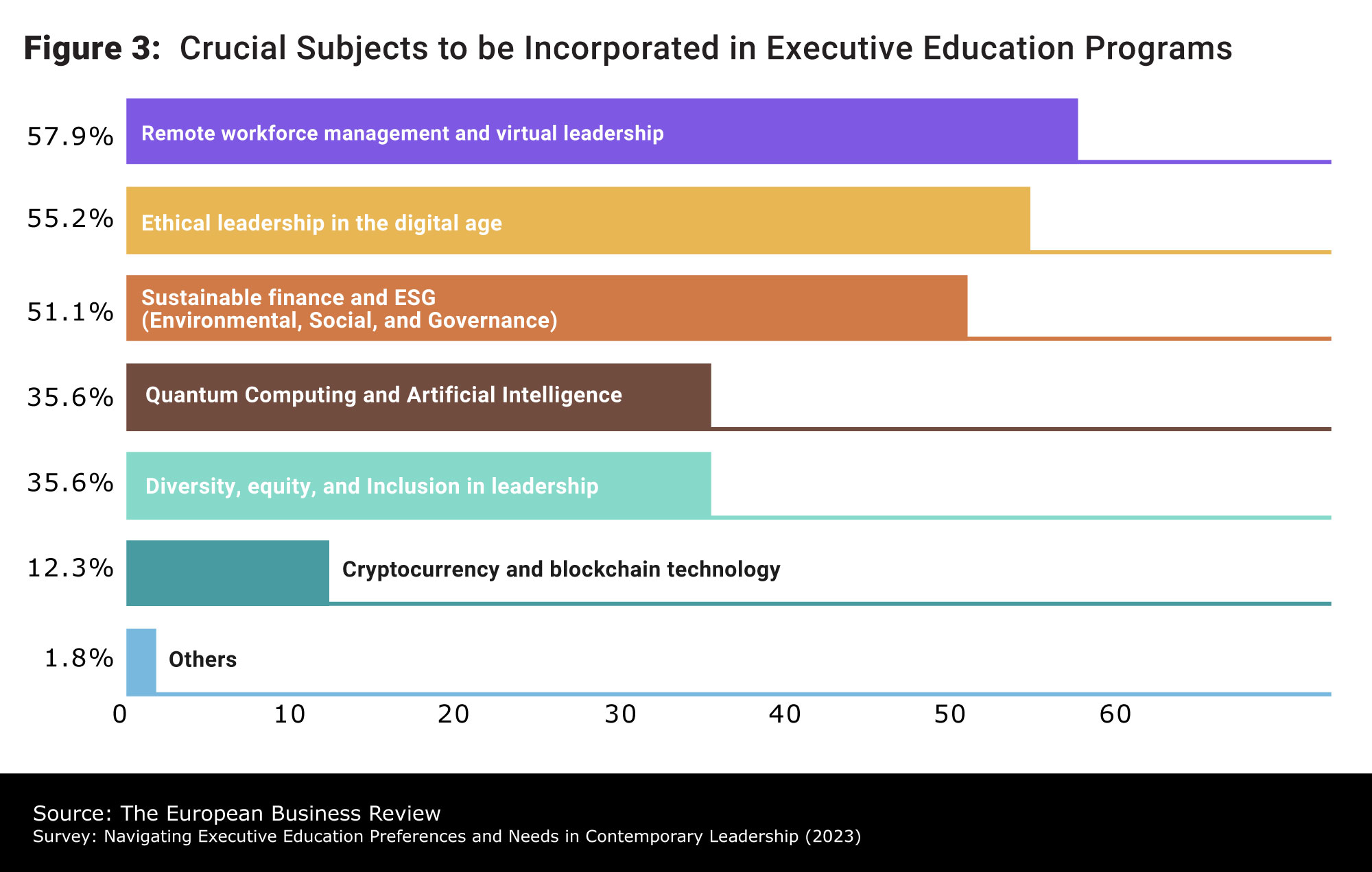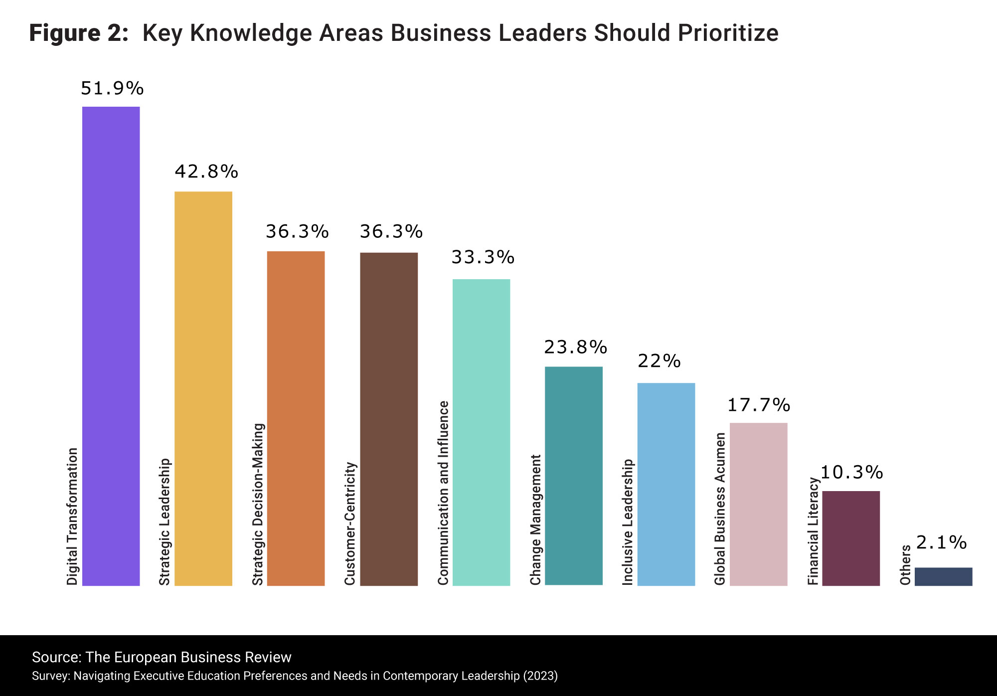 As companies navigate the fast-changing, modern business landscape, characterized by volatility, uncertainty, complexity, and ambiguity (VUCA), the imperative for digital transformation has become undeniable. In this environment, executives are acutely aware of the pivotal role strategic and digital leadership skills play in driving success. They understand that mastering the art of strategic decision-making is paramount for thriving in rapidly evolving and fiercely competitive industries. Our survey results show that a significant 59.4% of respondents recognize the urgent need for an executive program that emphasizes the criticality of strategic leadership and management in the digital age, 41.4% want a program that addresses business analytics and data-driven decision-making under digital transformation, while 40.9% want to learn about effective communication and influence.