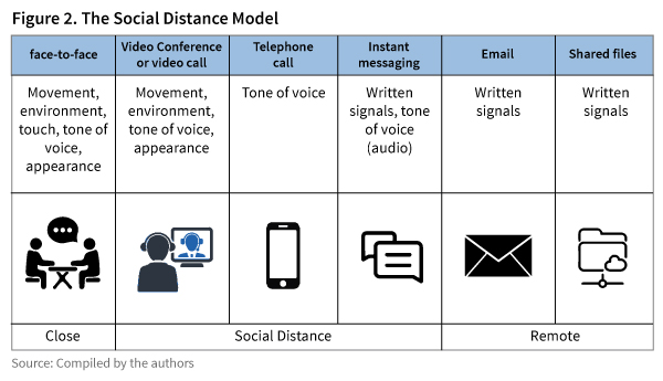 A third dimension that it is necessary to bear in mind when choosing the medium is social distance. As mentioned, if the distance is minimal or close, such as in a face-to-face negotiation, the language used will be more expressive. Conversely, if the distance is great, such as it is with shared files, the degree of communication will be much lower. Figure 2 shows the ascending model of this distance.