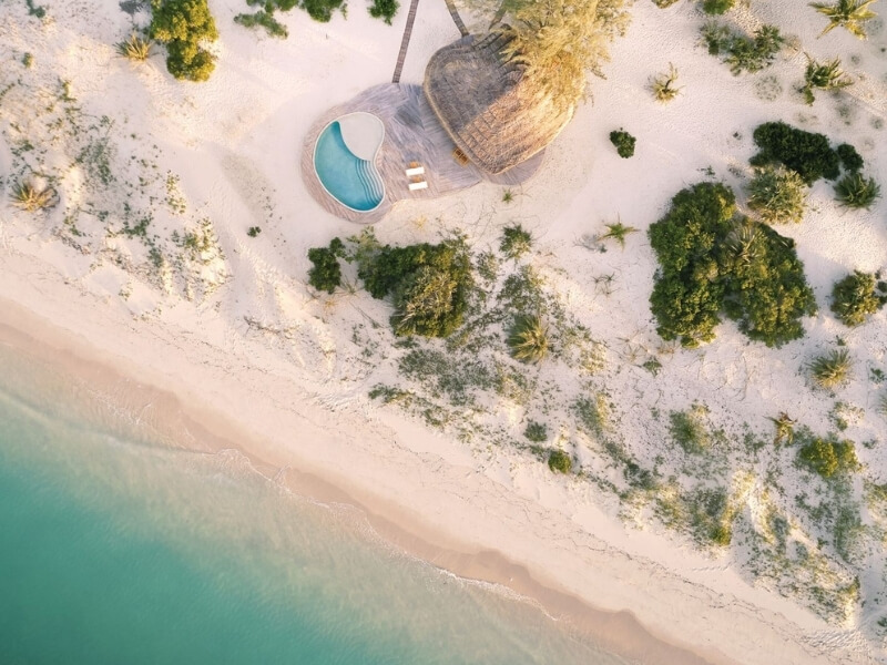 Spanning 300 hectares of virgin territory in Mozambique, Kisawa Sanctuary on Benguerra Island is the first hotel established by entrepreneur and philanthropist Nina Flohr. Kisawa proudly boasts of 12 bungalows from 1-3 bedrooms; each with its own open-air deck, private pool, outdoor kitchen, and a secluded part of the beachfront. This intimate set-up provides guests with plenty of room to fully immerse themselves in the natural beauty of the landscape, showcasing all of its traditional craftsmanship.