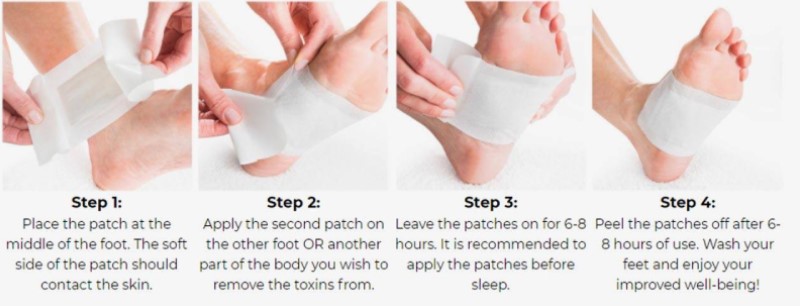 - Step 3: Apply the second patch to the opposite foot OR any area of the body where toxins should be removed.