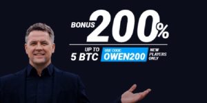 - 200% Match Deposit Bonus (OWEN200): Use the OWEN200 bonus code to claim a 200% match deposit bonus of up to 5 BTC. This bonus is valid on keno and online slots.