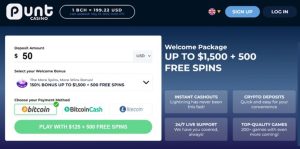 Punt Casino is a crypto online casino with a selection of over 500 Bitcoin games.