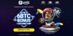 This welcome package also features a second deposit bonus offer of 75% up to 1 BTC and a third 75% deposit bonus up to 2 BTC. Use the POWERUPNEW, POWERUP2, POWERUP3 bonus codes. Use the Punt bonus code UNLOCK25 bonus code to get a free chip of $25.