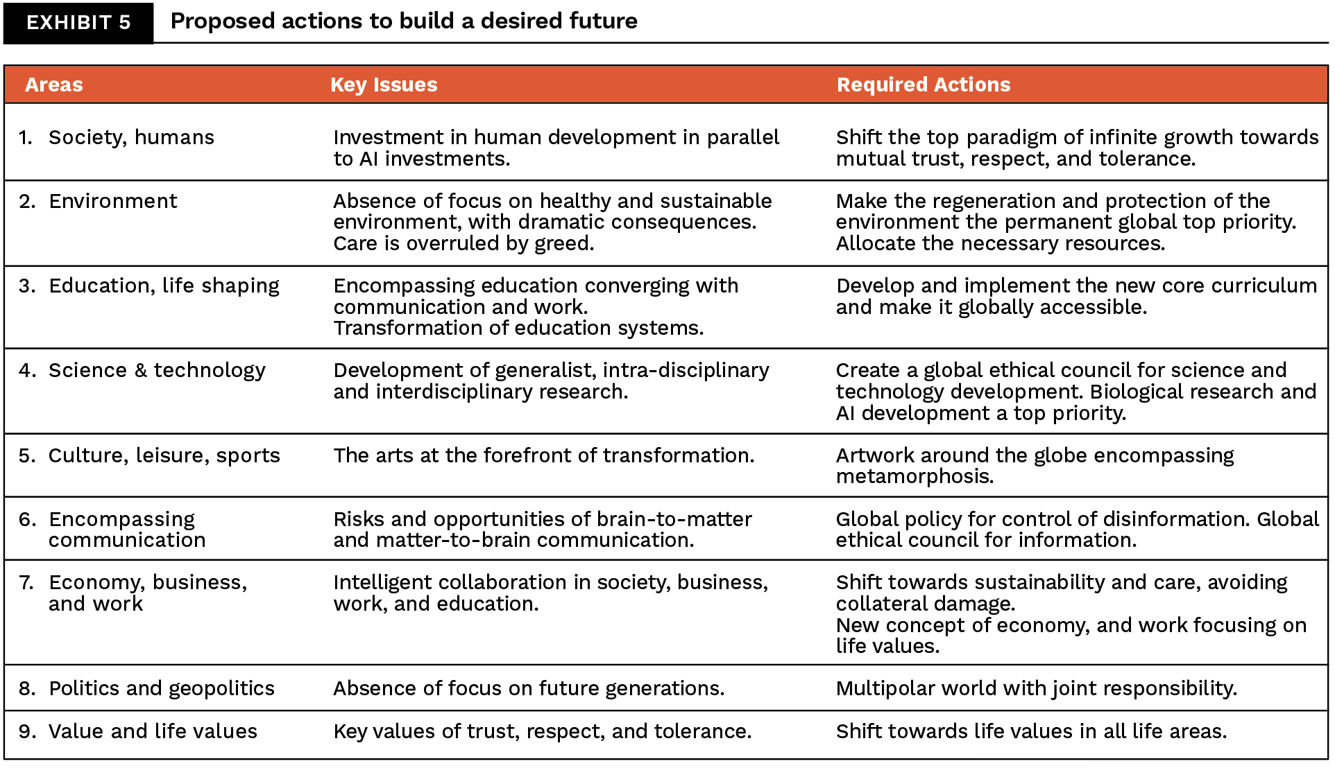 Exhibit 5 summarizes concrete actions designed to become part of the desired future.