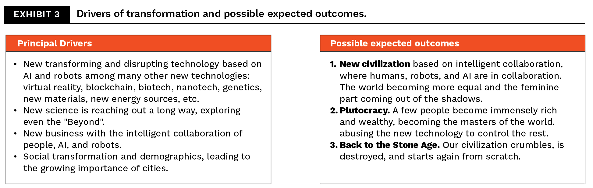 Given the deep transformation that is looming on the horizon, we need to adopt a more proactive attitude and move from the expected future to the desired future. It is this that will enhance the quality of our lives. But, for this to happen, we need to understand what is going on in the period of deep transformation in business and society. The voyage to a desired future will involve our imagination and a firm stand and adaptation of new paradigms that will serve as a guiding compass. This article is not intended to provide a solution to all future issues, but to raise the level of consciousness of what is happening and perhaps create a wish list for actions. We should never forget that we live only here and now. Tomorrow is a bridge to the day after tomorrow!