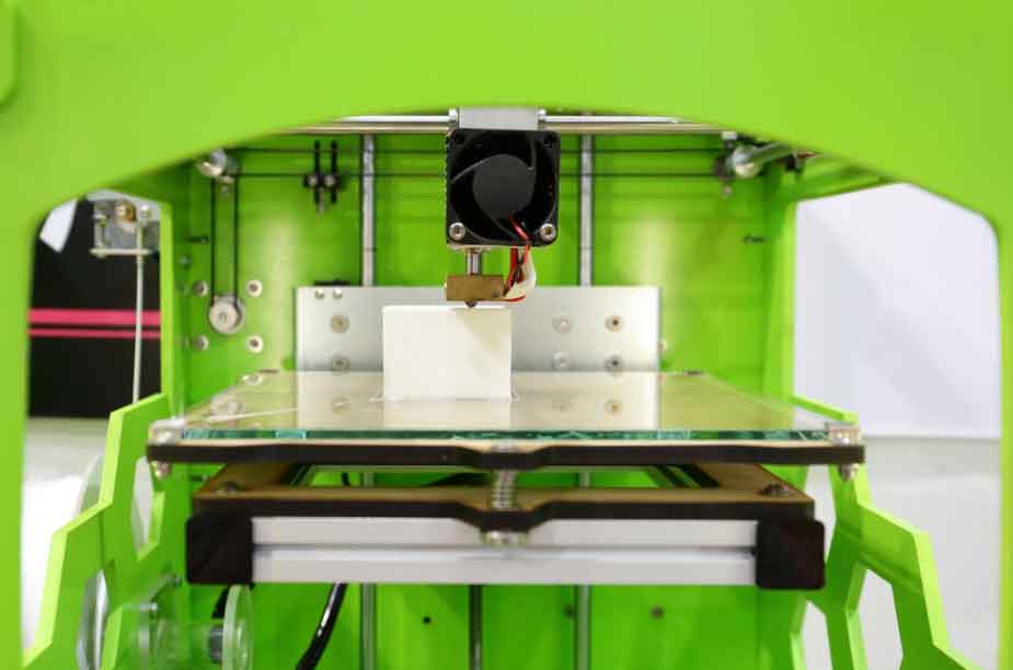 The 3D printer is then loaded with a spool of recycled, extruded plastic. It is fed into the nozzle where it is heated once again and then printed into layers. The layers build up and cool as it goes, creating a solid 3D structure.