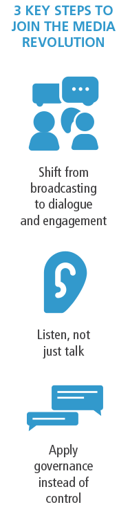 Businesses today are well aware of the reach and influence of social media, and many have jumped on the social media bandwagon. But it is proving more like a rollercoaster for some, with ups and just as many downs. Research shows three key steps that will help businesses join the 21st century media revolution in a way that minimises risks and maximises the benefits through (1) a dialogic approach rather than broadcasting; (2) listening as well as speaking; and (3) encouraging social media engagement within a framework of governance rather than a climate of control.