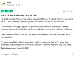 If you want to learn more about Spin Casino’s services and products, you can read the reviews left by its customers below.