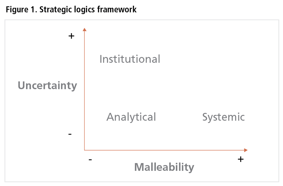 In this article the authors discuss how organisations can better strategise for the future by integrating and balancing the three logical approaches to strategy: analytical, institutional and systemic.