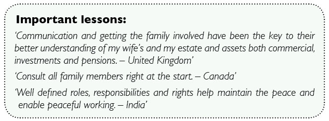 In engaging with family and other persons involved in succession, you must recognise that they are seeking certainty about the process and their future. They wish to feel a sense of contribution and a positive outcome where there are opportunities for individual growth.