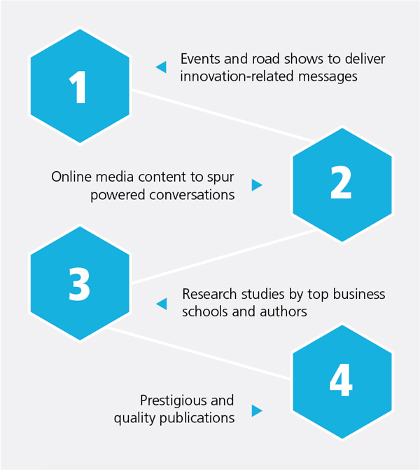 Finally, identifying the right communication Channels is crucial. Successful companies carefully screen the available channels, and identify priorities based on content and target audience. Clearly, online media is now a powerful communication channel. It enables companies to engage external people in online discussions about innovation-related topics. In addition, it prompts people to talk to each other about the company’s innovativeness. Traditional media should not be overlooked and be included in the Innovation Marketing plan. However, we believe that the use of traditional channels should be more selective. Prestigious management magazines, as well as academic journals, provide, for instance, the right communication link between the company, leading figures in innovation, authoritativeness and the targeted company’s innovation profile.
