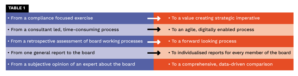Increasing risks and scrutiny from investors and the media put boards to the test. They are challenged to continuously learn, evolve, and increase their effectiveness. Fully facilitated external and internal reviews form an integral part of annual board calendars and are there to help members gain insights on how they can become more effective. As pressure increases on boards, so does the pressure of the practice of conducting these reviews. In recent years we have seen some big shifts.