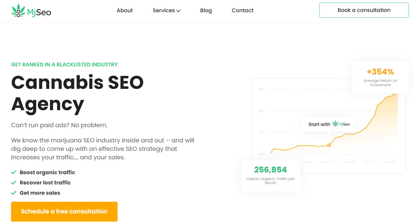 The MjSeo Agency is first on our list for a reason. This agency has closely worked with various cannabis businesses, from canna seeds to CBD to local dispensaries, for more than five years. They have been thoroughly navigating the nuances of the industry while effectively optimizing their client’s online presence.