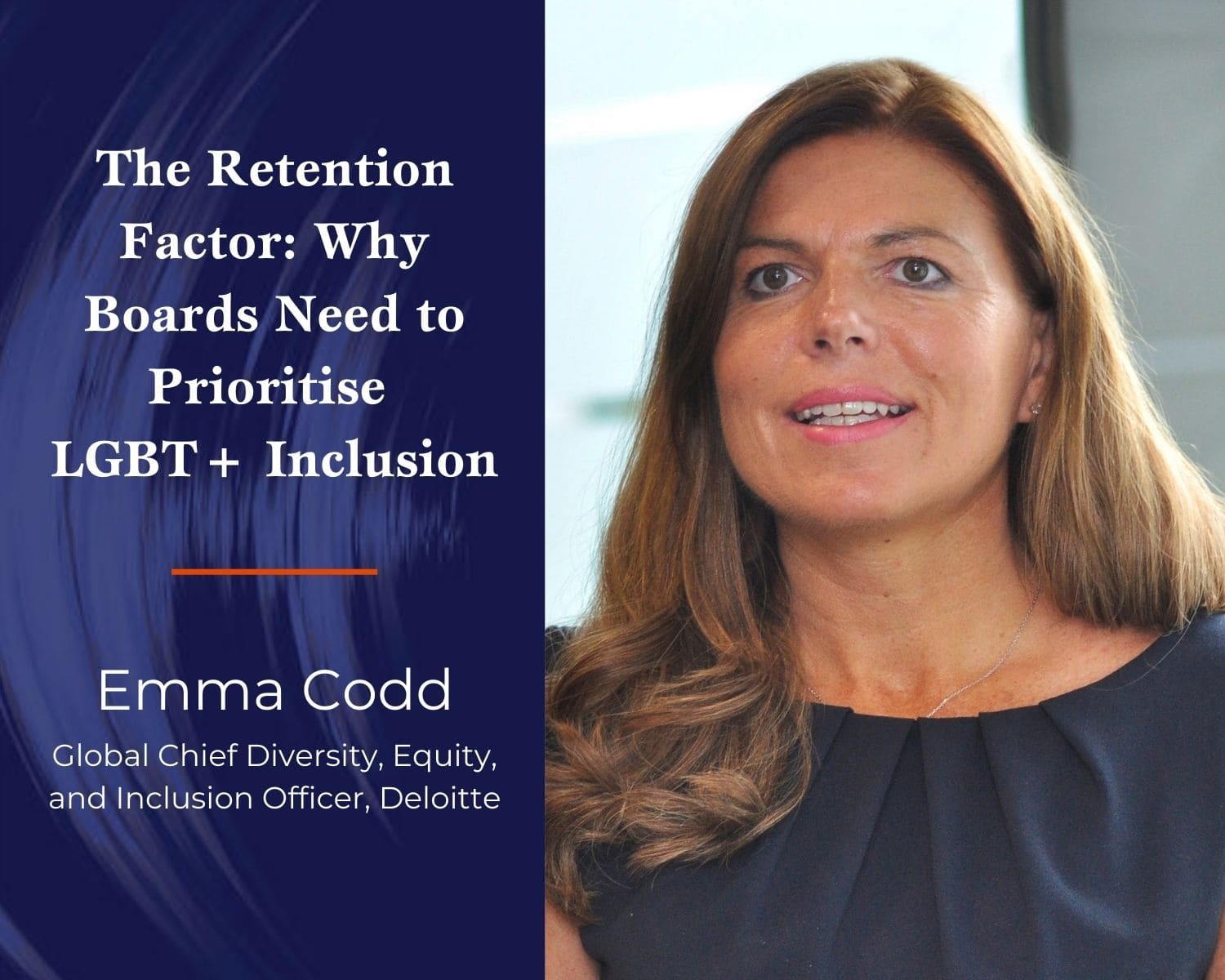 In this podcast, Dr Sabine Dembkowski, Founder and Managing Partner of Better Boards, discusses the 2023 LGBT+ Inclusion @ Work report and why boards need to prioritise LGBT+ inclusion with Emma Codd, Global Chief Diversity, Equity and Inclusion Officer for the professional services firm Deloitte.  Emma leads the firm’s strategy on gender balance, LGBT+ inclusion, mental health, disability inclusion, neurodiversity, and the development and delivery of thought leadership aligned to this strategy, including the annual ‘Women@Work – a Global Outlook’ report. In 2021 Emma was awarded Honorary Membership by the UK’s ICAEW for her work championing diversity and inclusion of womenÂ