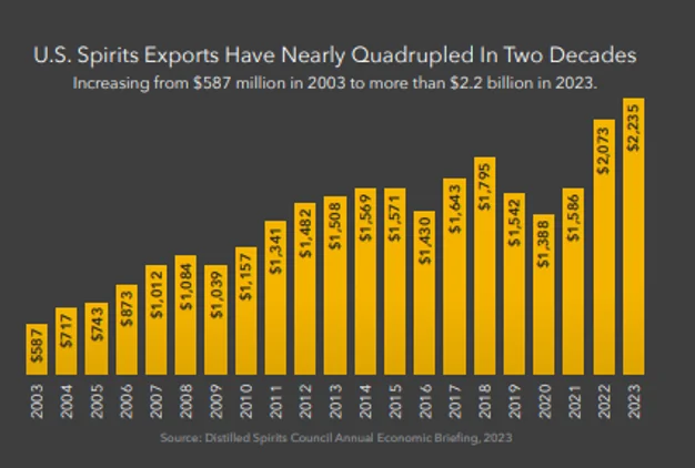 What once stood as a symbol of heritage has quietly become a vessel of value. In the 2024 Economic and Fiscal Impacts by the Kentucky Distillers’ Association, data showed that from the years of 2003-2022, there was a dramatic growth of 2,015% in bourbon production to meet accelerating demand. It was also reported that total capital investments were $1.916 billion over the past five years, with two-thirds towards buildings and land.