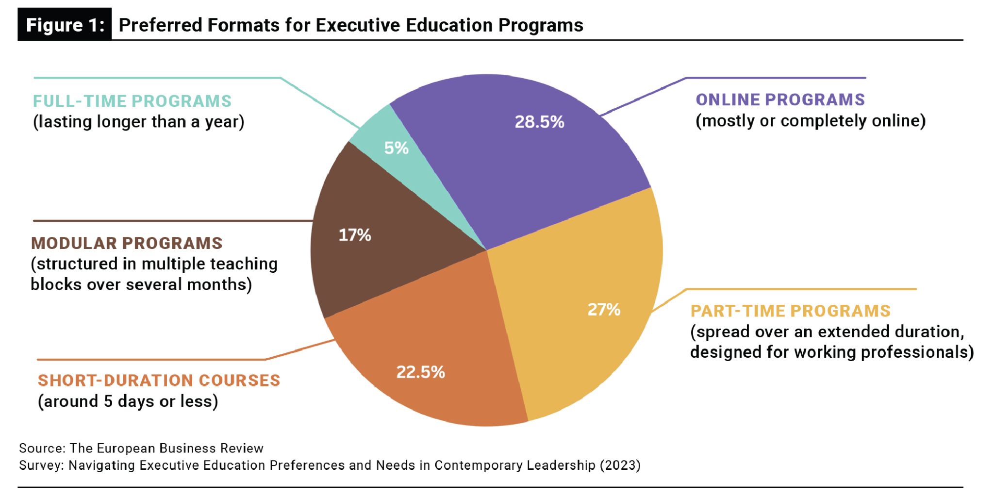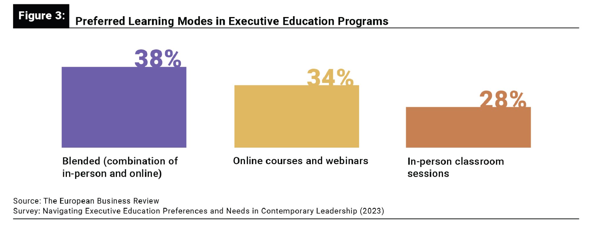 The survey results highlight a diverse range of preferences among participants when it comes to executive education formats. From the flexibility of online and part-time programs to the intensity of short-duration courses and the structured approach of modular programs, professionals seek formats that align with their individual needs, preferences, and lifestyles. Understanding these preferences is essential for institutions and educators in designing executive education programs that cater to the evolving demands of today’s professionals.