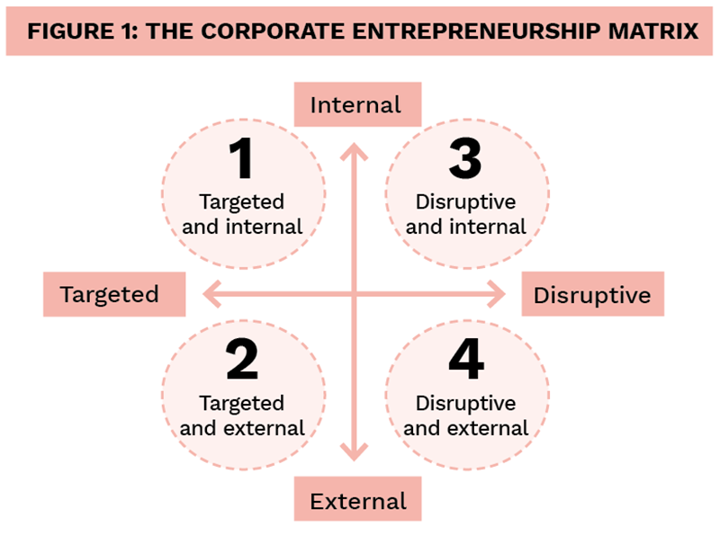 How have innovation practices changed in the last years? We conducted around 20 semi-structured interviews with senior managers of companies ranging from multinationals to startups. From our findings, we derive a guiding framework, which we call the Corporate Entrepreneurship Matrix, that helps executives organize their innovation activities.