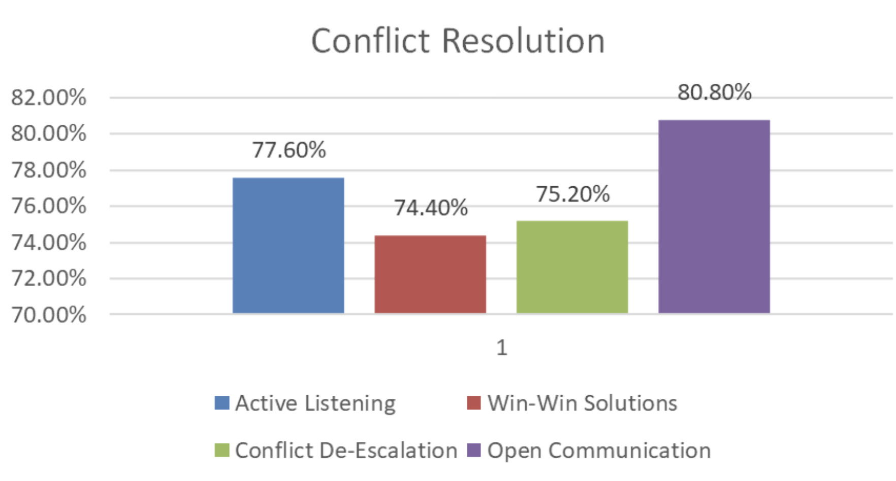 - Open Communication: 80% highlighted the role of controlling emotional impulses in de-escalating conflicts.