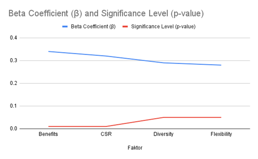Regression analysis demonstrates the influence of CSR, diversity, benefits, and flexibility on retention preferences. Benefits showed the strongest impact on the retention of Generation Z in this survey (β = 0.34, p < 0.01), this was followed by CSR (β = 0.32, p < 0.01), diversity (β = 0.29, p < 0.05), and lastly, flexibility which is still significant to the 0.05 level (β = 0.28, p < 0.05).