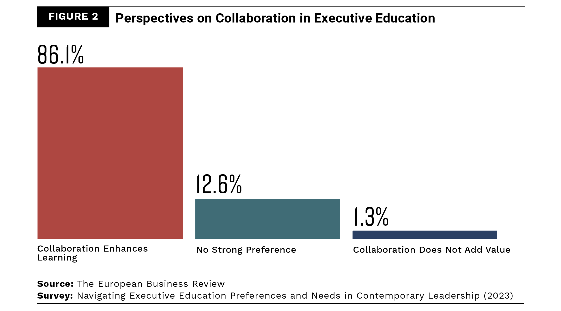 EdTech platforms like Udemy, edX, and Coursera have risen in popularity as they offer a variety of high-quality courses that are affordable and accessible from anywhere in the world. According to our survey, 86.1% of respondents feel that executive education programs benefit significantly from collaborations with these online learning platforms, enhancing the depth and quality of the learning experience. This trend indicates a growing appreciation among executives for the value of diverse, accessible, and flexible online learning options.