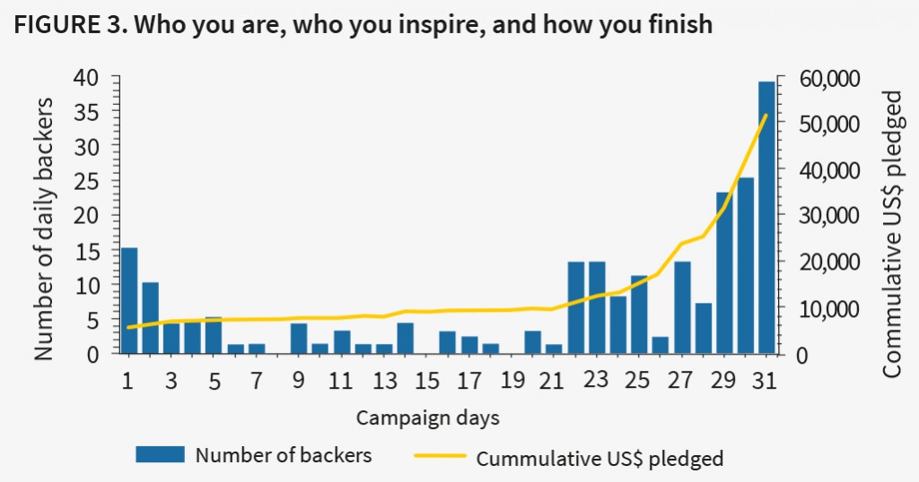 Success in traditional entrepreneurial finance is often attributed to the quality of the opportunity and the credentials of the entrepreneur. Private investors rely on key gatekeepers and referrals to filter out the vast majority of deals from reaching their desks. Crowdfunding novel, creative projects is clearly different. The transparent nature of the online platform gives investor-donors access to hundreds, if not thousands of alternate projects that claim to make a difference. Donors are not necessarily swayed by prior success or expected project impact. Early enthusiasm can fade quickly; first impressions may not last.