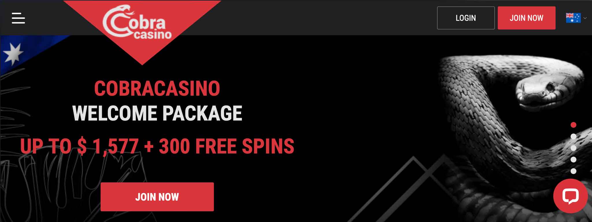Cobra Casino is a real money gambling site that has over 500+ casino games to choose from. Their software real cash casino uses state-of-the-art encryption and security protocols. This real money no wagering casino offers hassle free payouts with a variety of withdrawal options available for cash gamblers from Australia.Â