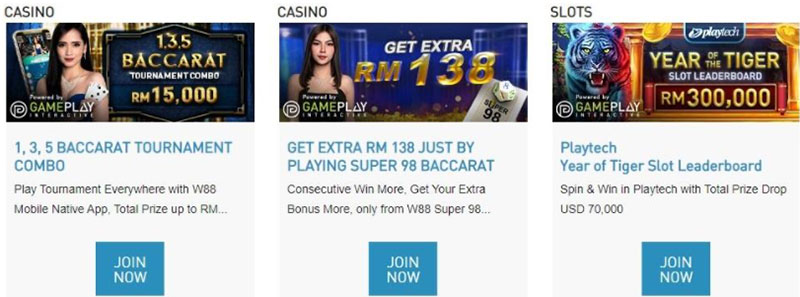 W88 allows Malaysians to play live casino games, slots, online poker and sports betting – it’s a complete casino offering literally all gambling types.