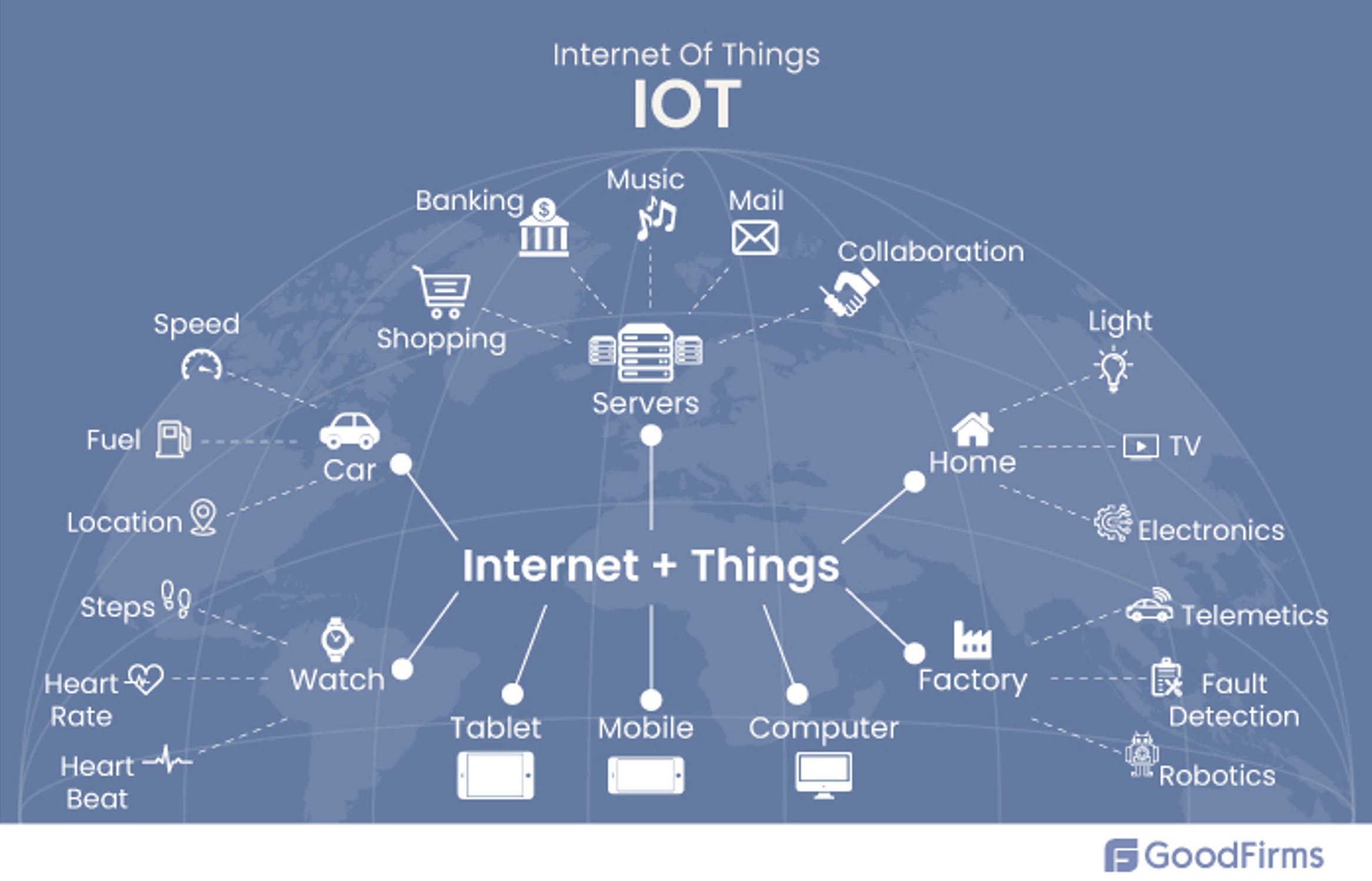 Examples of IoT include smart security systems that create a safer and more convenient living environment; smart lighting systems that allow users to control their homes’ lightning remotely; temperature control systems that enable homeowners to manage their home temperature; and smart cars like Tesla use IoT to access the car remotely and perform functions like unlocking doors, starting the engine and adjusting the air conditioning, etc.