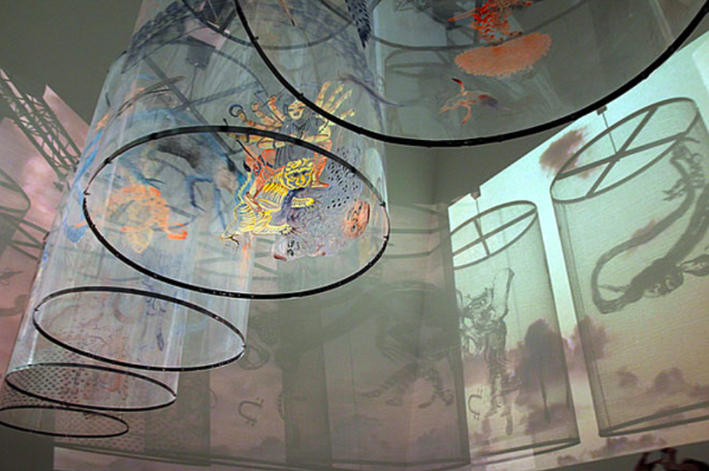 During the Partition Of India, Nalini Malani’s family left their home behind and became refugees before relocating back to Mumbai in 1958. This experience greatly impacted her future work and inspired Malani to showcase the various impacts that societal strife has on children. In the early 1990s, the rise of sectarian violence throughout India resurrected Malani’s commitment to showcasing conflict, war, oppression, and the impacts of these events on individuals. During this time, the artist expanded her work to include various multimedia installations, including 1998’s famed “Remembering Toba Tek Singh”. This multifaceted video installation re-examined the history of the Partition of India and the destructive violence associated with the turmoil. This piece evoked conversation, and undoubtedly questioned the lack of humanity associated with violence, especially related to the turbulence experienced by children of war.