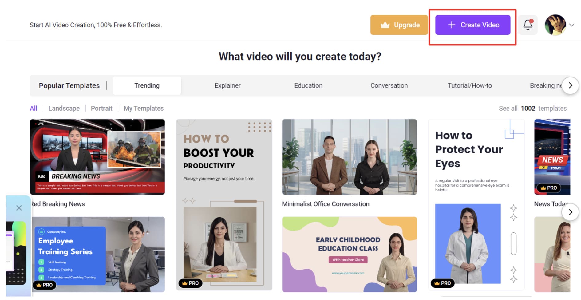 Step 1: Go to the official website and click the “Create Free Video Now” option.