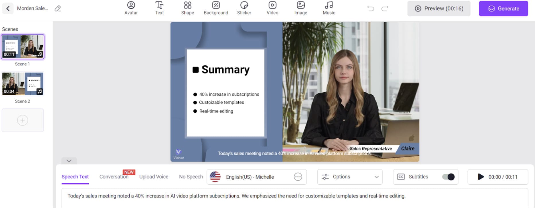 Step 6: Your video will soon be ready. To get the final results, click the “Generate” option. If you first want to check the changes, click the “Preview” button.