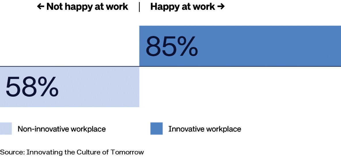 When choosing a potential employer globally, they ranked “being innovative” ahead of all factors, including salary, as the most important and decisive factor. Once at work, those working at self-defined innovative companies were over five times more likely (43 per cent) than those at non-innovative companies (8 per cent) to say they were “very happy”, whereas tech workers at companies not perceived as innovative were four times more likely to say they were considering leaving within the next year.