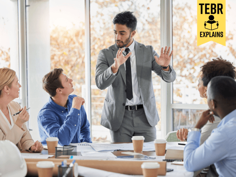 Leader sharing ideas and insights to business partners. Thought leadership concept