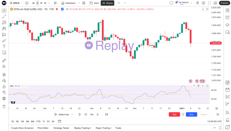For example, this is how your gold price chart may look today, if you were to backtest your strategy using gold price data starting from January 2021.