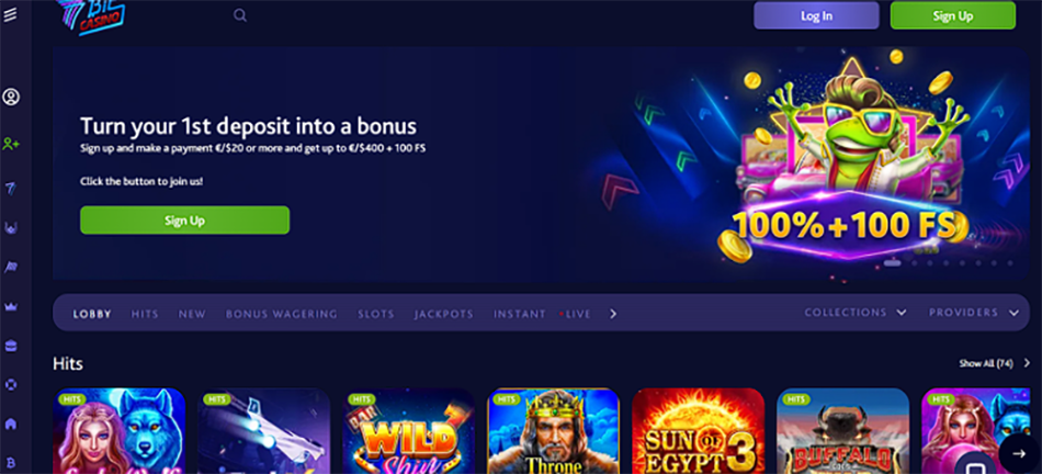 - 100% up to 1 BTC Sign-Up Bonus: Start your crypto casino journey with a 100% Bonus, offering up to 1 BTC or its equivalent in other currencies.