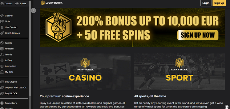 4. Lucky Block — a sign-up package of 200% deposit match + 50 FS