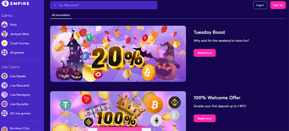 5. Empire.io — a 100% welcome bonus of up to 1 BTC